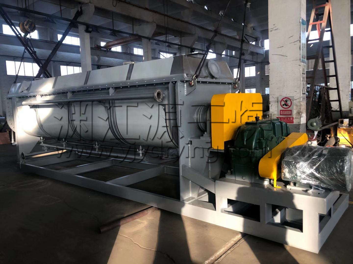 2、桨叶干燥机系统造价低:单位有效容积内拥有巨大的传热面,就缩短了处理时间。设备尺寸变小,减少了占地面积。